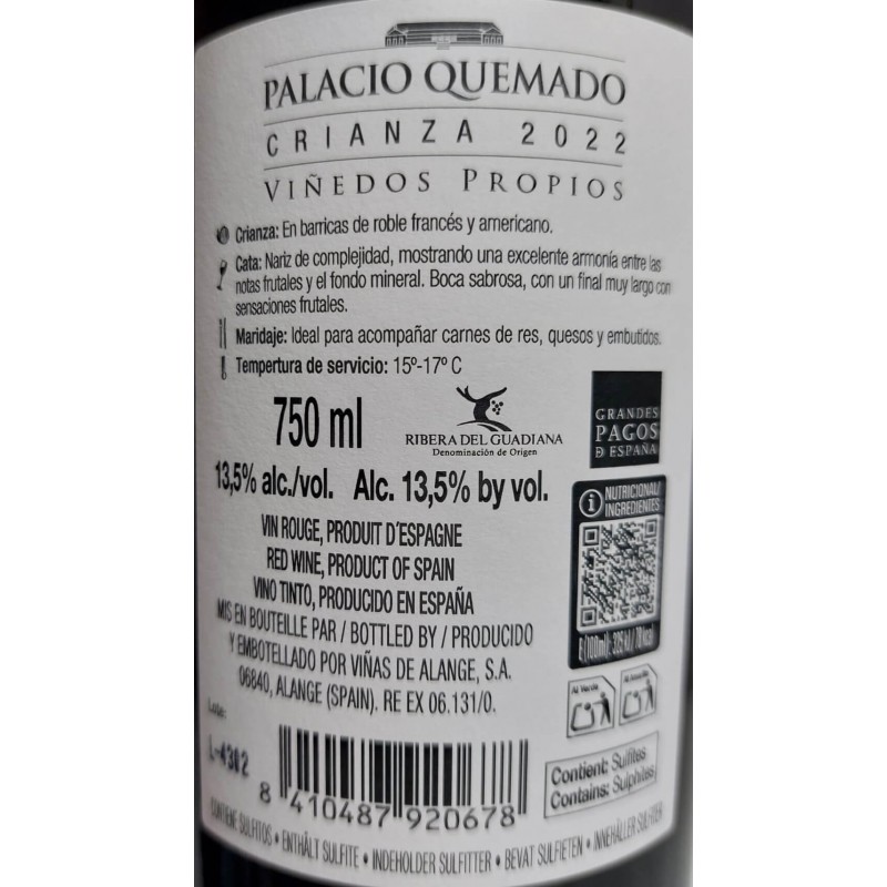 Nombre del Producto: Palacio Quemado Crianza