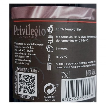 Origen de la uva: Viñedos seleccionados en Almendralejo, Badajoz, Extremadura