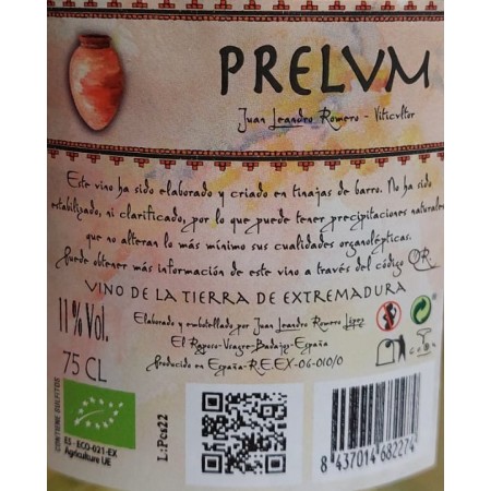 Elaboración: Vino espumoso ecológico ancestral elaborado con vendimia manual nocturna en pequeñas cajas de no más de 16 kg. Traslado a la bodega y selección en mesa. Despalillado y prensado. Fermentación en tinajas de barro con levaduras indígenas a temperatura controlada durante 15–20 días. Posteriormente, los mostos se unen y se embotellan para que el carbónico natural se genere en el proceso. Crianza de 6 meses en botella.