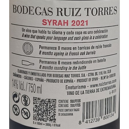 Este monovarietal de Syrah proviene de las mejores parcelas de la bodega, situadas en la Sierra de Guadalupe. Ha sido envejecido 8 meses en barrica de roble americano y otros 8 meses en botella, lo que le otorga un perfil equilibrado y sabroso.